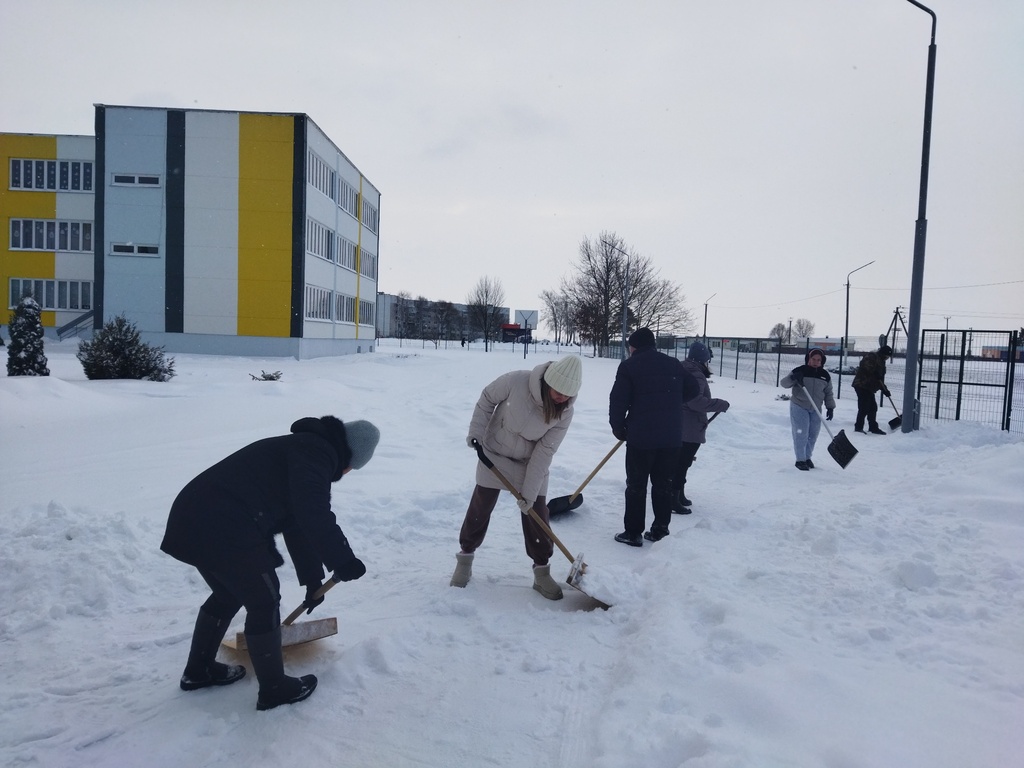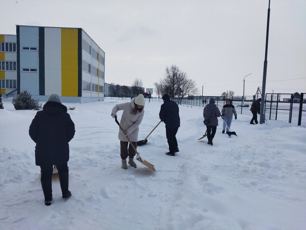 Первый зимний субботник в гимназии проходит на ура! Учащиеся, учителя, работники и родители дружно расчищают снег, заботясь о безопасности и уюте нашего двора. Работаем командой!
